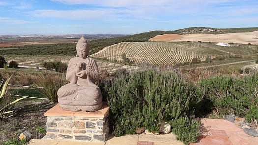 Sunbathing in November? Totally possible in Andalusia. The weather is just excellent, allowing you to take the vitamin D and joy. The countryside of Andalusia during this time of the year has very dry soil, many olive trees with olives, and mandarin trees as well ready for harvesting. I did not experience any rain during the week and took the chance to swim in the pool. The quietness and tranquillity of the place allow for contemplation, meditation and yoga in nature, as well as yogic facilities.